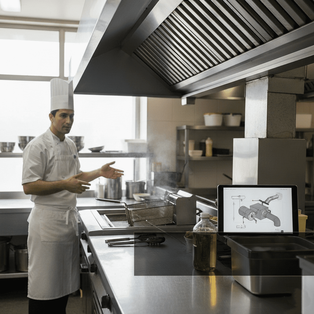 - ماندگاری دکوراسیون: چربی معلق در هوا اگر مکیده نشود، روی مبلمان و میزهای سالن پذیرایی نشسته و ظاهر فستفود را کهنه نشان میدهد.
