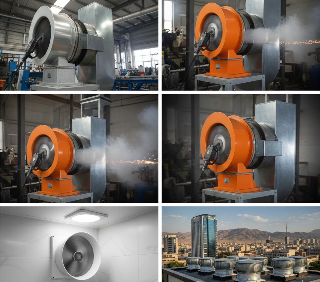 - آشپزخانههای صنعتی و رستورانها (جهت خروج دود، چربی و بو)