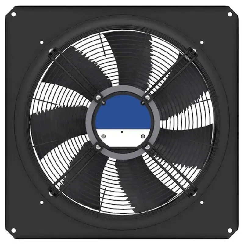 فن آکسیال دمنده (Blower Axial Fan) برای ایجاد جریان هوای مثبت و فشار به سمت جلو به کار میرود. وظیفه اصلی آن تزریق هوای تازه به محیط یا خنکسازی تجهیزات (مانند تابلوهای برق) است.